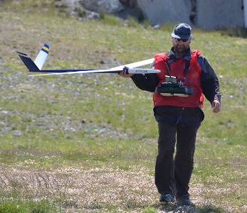 V sobotu ráno to vypuklo! V 10,00 jsme už byli nastoupení na startovišti a směle začali čekat na správné podmínky, protože vítr foukal na západní svah hodně zboku. Jak Richard správně podotknul, když neotočí kopec, musíme počkat, až se otočí vítr. To se taky stalo kolem třetí hodiny. Začalo se soutěžit! Jenomže po půl kole se pan vítr rozhod změnit směr na jih, tak jsme se stěhovali na hlavní kopec. Když už tam byli všichni, pan vítr se vrátil na původní kopec, tak jsme zase jako mravenci stěhovali věci zpátky. Ten den se ještě odlítaly tři kola s rozdílnými výsledky a časy se pohybovaly od 44 do 65s, takže správná loterie. Pří balení věcí Richard zjistil, že se mu ztratilo jedno závaží z balastu a dva imbusy, takže neměl jak rozšroubovat Stinga, kterého si jen tak cvičně složil.